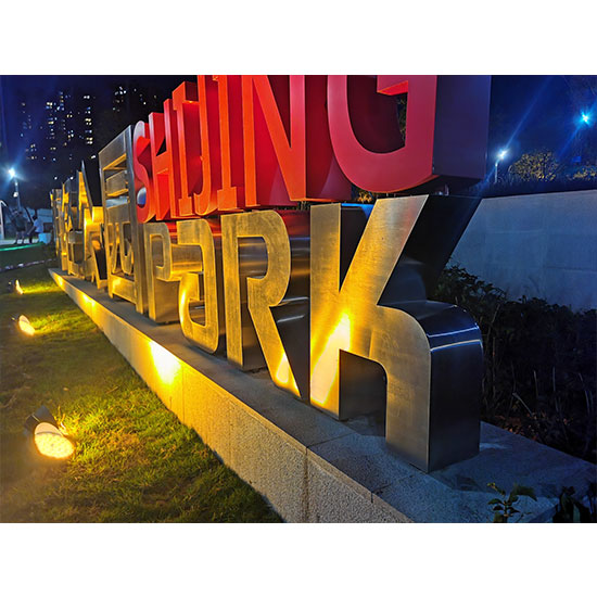 落地字,又称景观字,落地艺术字等,就是把字体制作成型,直接安装在在面上、草坪上,落地字的特点是,外观厚实、效果震撼。主要安装于:广场、酒店、公园、绿道、商业中心···