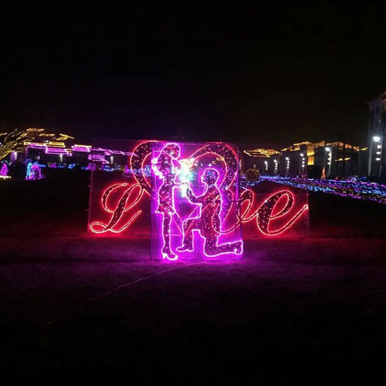 节日庆典布置,采用星星灯、灯带、小品灯、网灯等按照特定的造型,布置成图案、纹理等。节日彩灯的特点:使用周期短,安装面积大,只需要夜景效果,白天表现不需要太好。益···